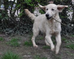 Dunja ist ein besonderes Schätzchen, das ganz besondere Menschen sucht. Das Golden Retriever Mädchen wurde am 12.10.2017 geboren. Sie ist ein liebes, verspieltes Mädchen mit einem kleinen Handicap. Ihr rechtes Vorderbein ist von Geburt an verkürzt. Das Beinchen benutzt sie nicht. Wir haben sie einem Tierarzt mit Spezialisierung für Orthopädie vorgestellt und seiner Einschätzung zufolge ist an dem Beinchen nichts zu machen und es kann so bleiben. Sie läuft auf drei Beinen und nimmt es wie selbstverständlich hin. Dunja spielt mit Artgenossen und hat Spaß in den Backen.